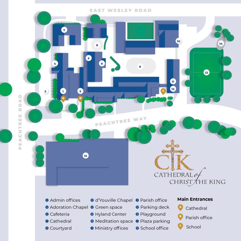 At 2827 Peachtree Road behind Fellini’s Pizza, this public parking deck is about 3 blocks from the Cathedral entrance. Validate your parking in the front office of the Cathedral.